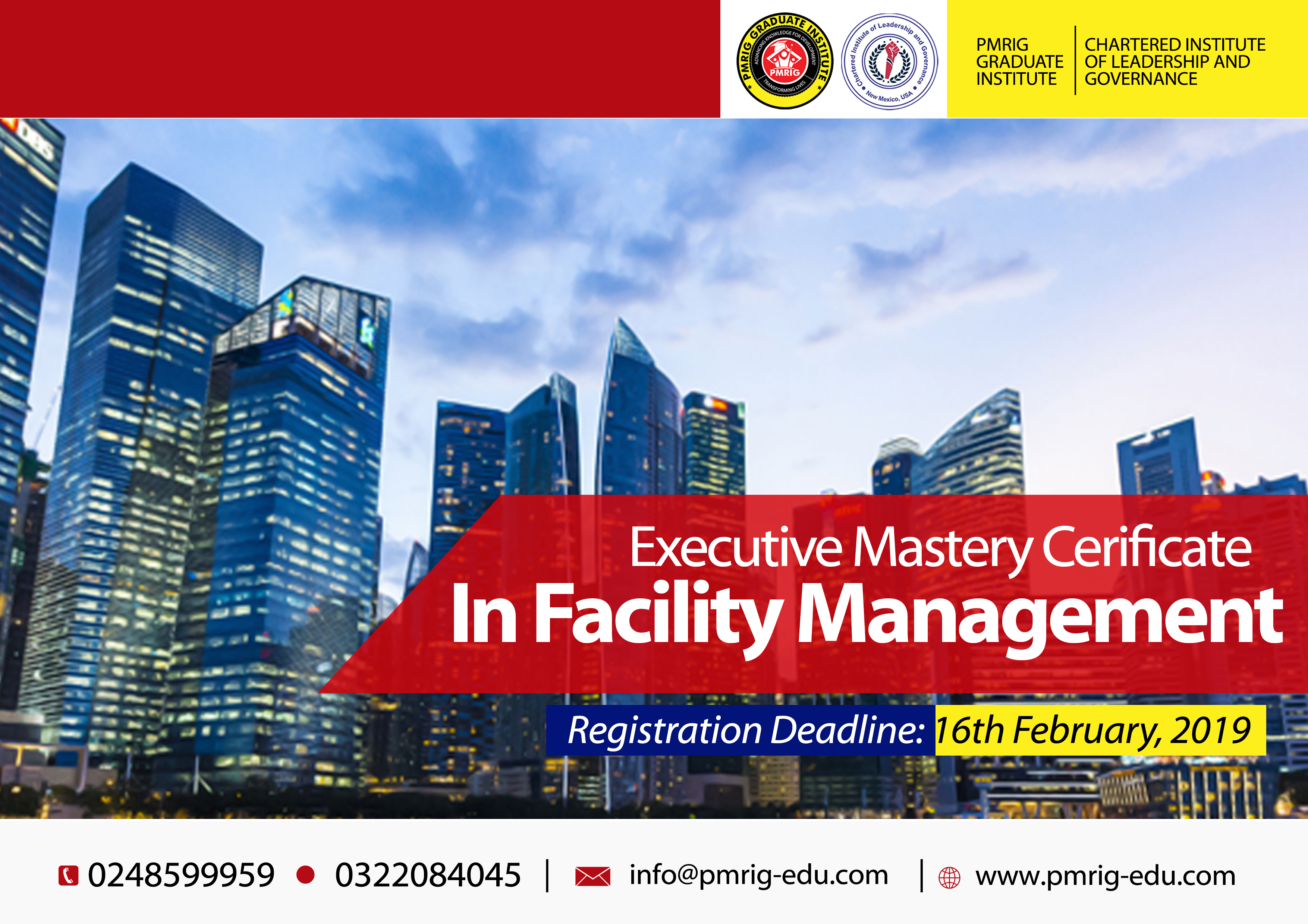 PMRIG Graduate Institute opens admissions for Executive Mastery Certificate in Facility Management. The deadline for application submission and registration is 16th February, 2019.